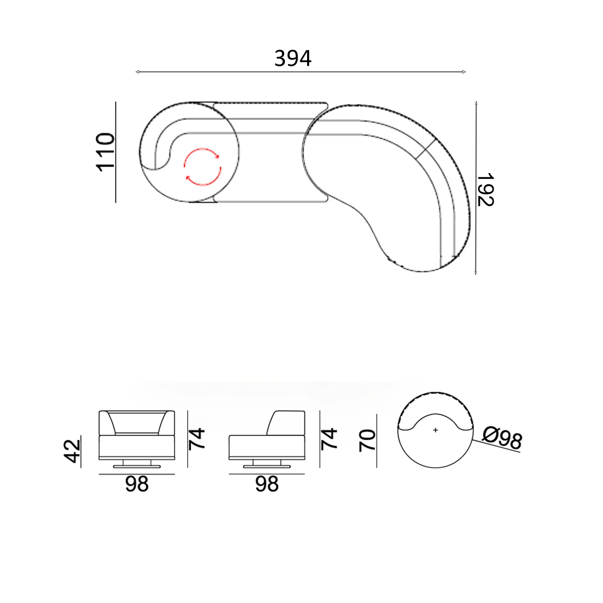 • 200 cm Drehmodul Sofa